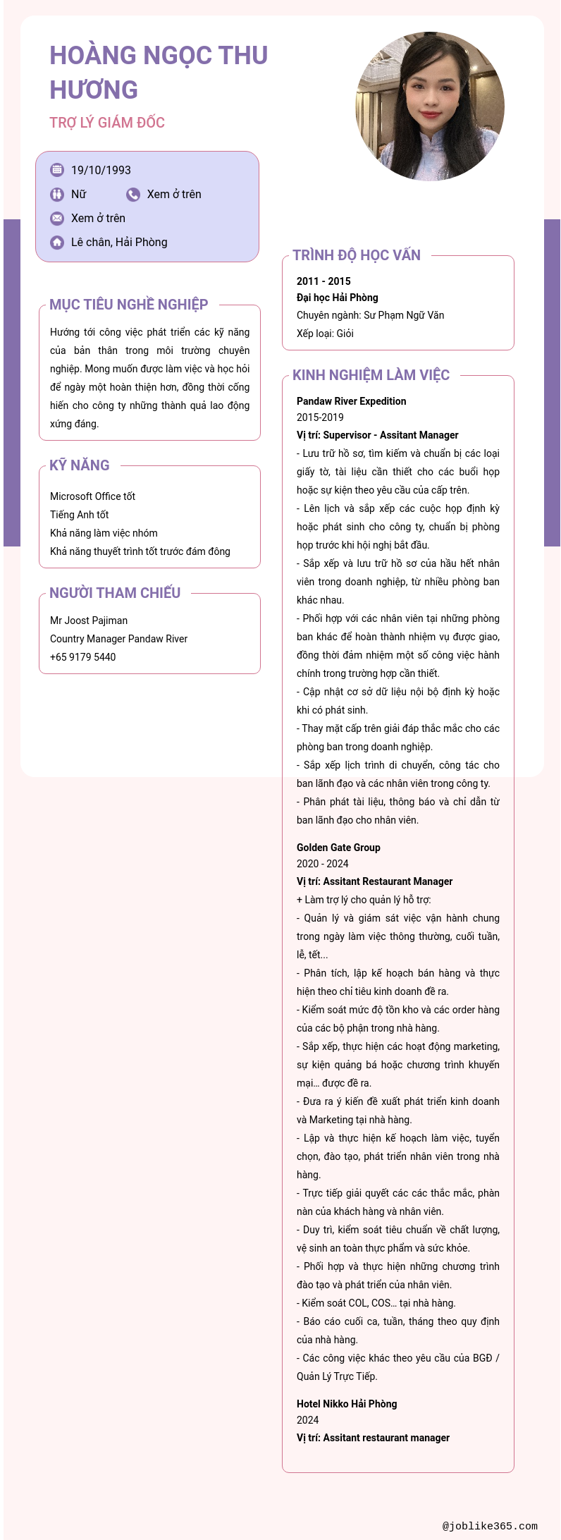 Xem hồ sơ ứng viên Hoàng Ngọc Thu Hương cần 2 điểm. Hồ sơ được cập nhật ngày: 06/04/2025