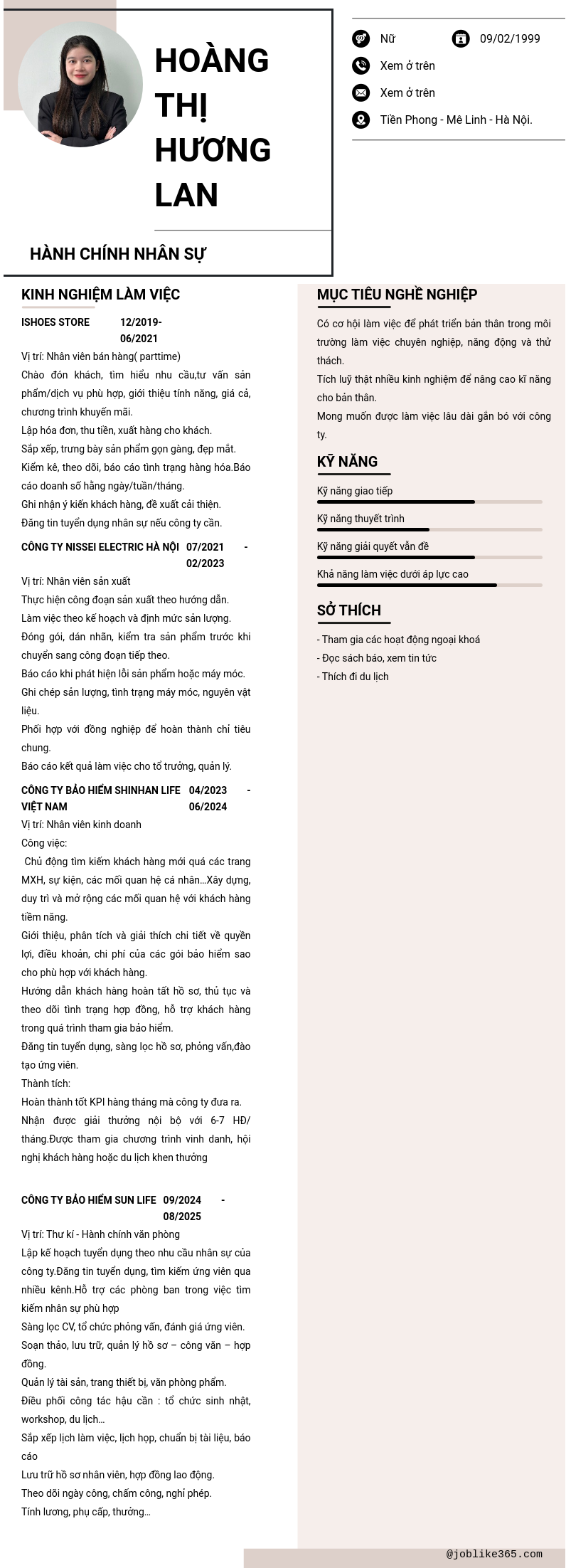 Xem hồ sơ ứng viên Hoàng Thị Hương Lan cần 2 điểm. Hồ sơ được cập nhật ngày: 21/10/2025