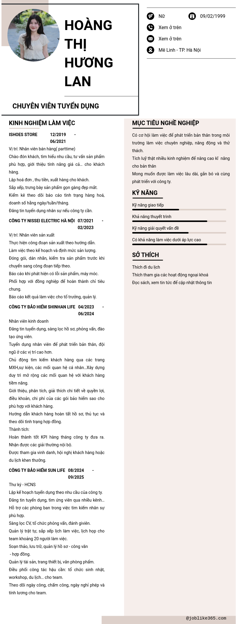Xem hồ sơ ứng viên Hoàng Thị Hương Lan cần 2 điểm. Hồ sơ được cập nhật ngày: 03/11/2025