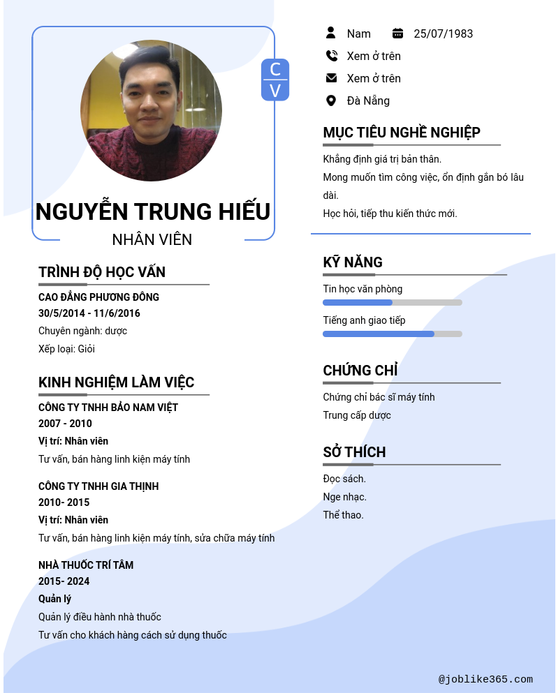 Xem hồ sơ ứng viên NGUYỄN TRUNG HIẾU cần 2 điểm. Hồ sơ được cập nhật ngày: 12/06/2025