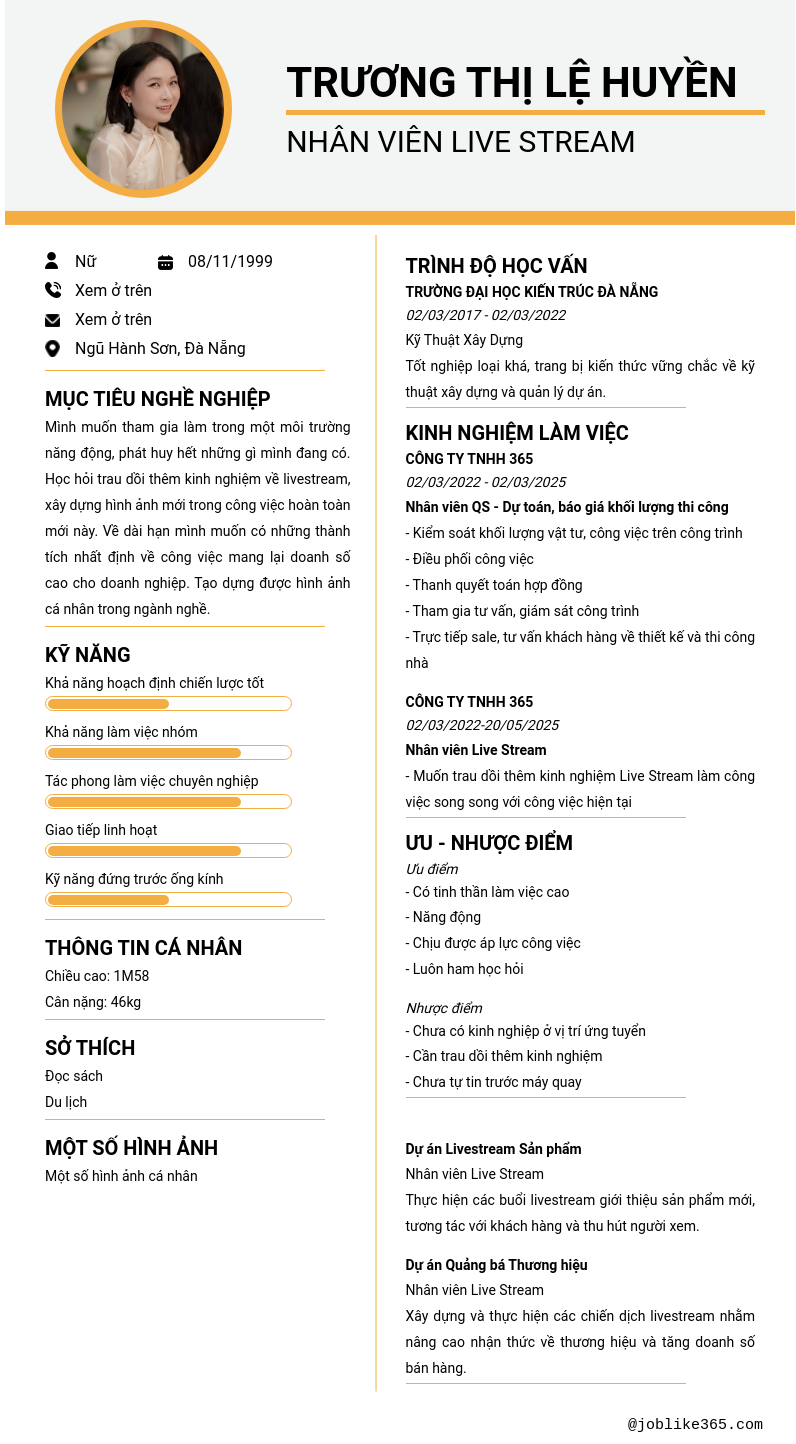 Xem hồ sơ ứng viên TRƯƠNG THỊ LỆ HUYỀN cần 2 điểm. Hồ sơ được cập nhật ngày: 16/09/2025
