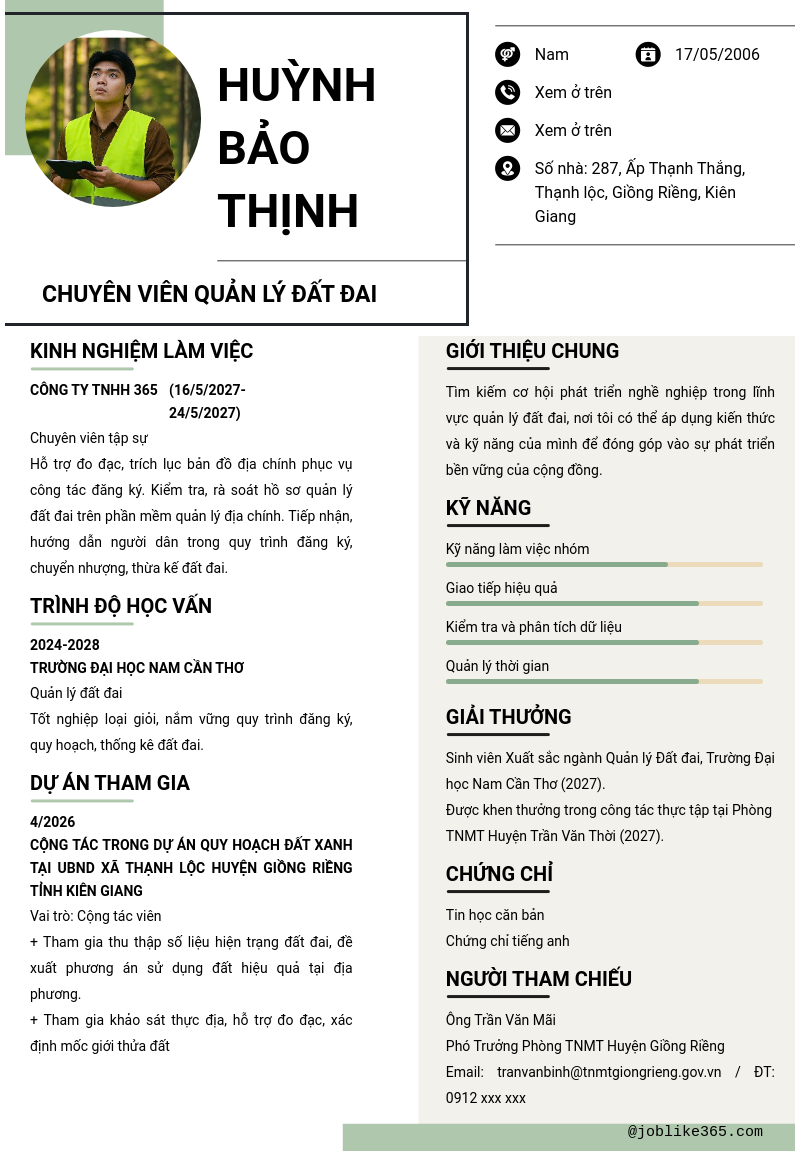 Xem hồ sơ ứng viên HUỲNH BẢO THỊNH cần 2 điểm. Hồ sơ được cập nhật ngày: 25/06/2025