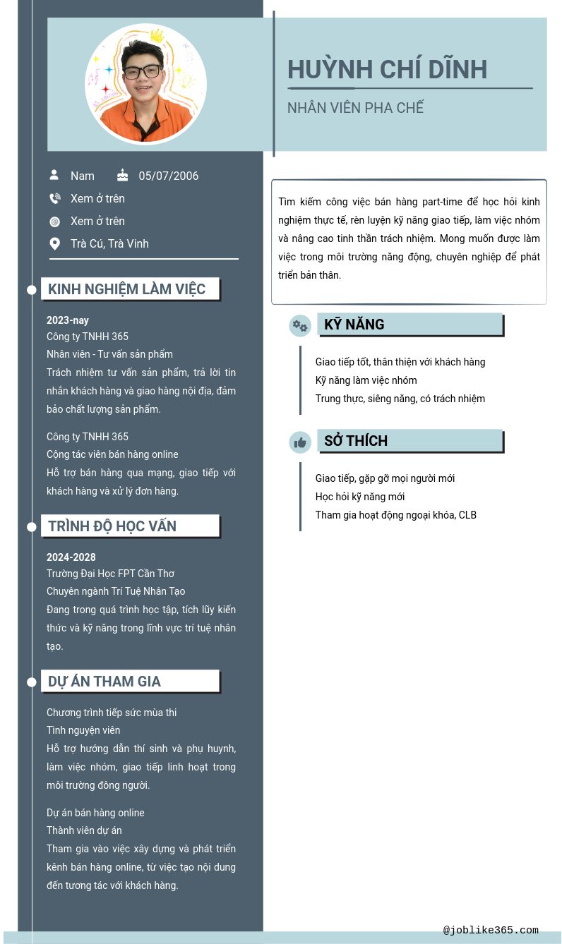 Xem hồ sơ ứng viên HUỲNH CHÍ DĨNH cần 2 điểm. Hồ sơ được cập nhật ngày: 18/05/2025