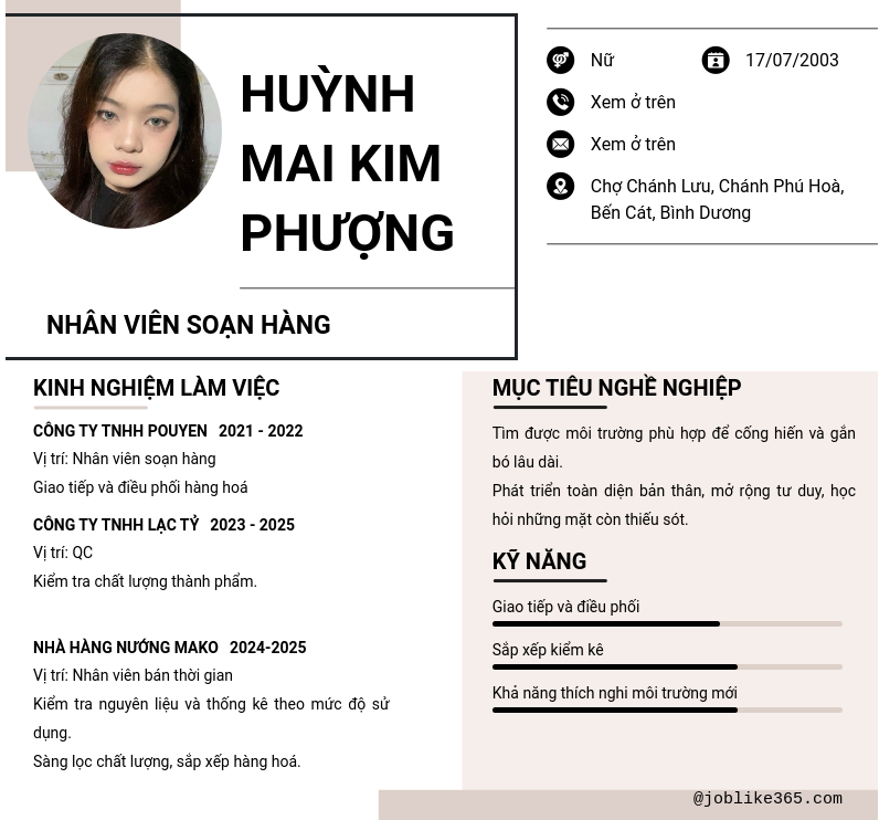 Xem hồ sơ ứng viên Huỳnh Mai Kim Phượng cần 2 điểm. Hồ sơ được cập nhật ngày: 03/03/2025