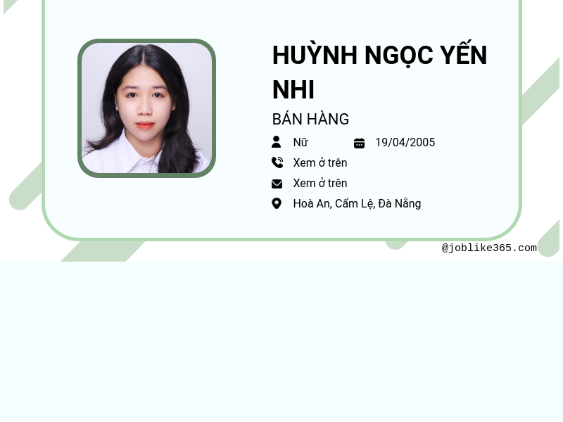 Xem hồ sơ ứng viên HUỲNH NGỌC YẾN NHI cần 2 điểm. Hồ sơ được cập nhật ngày: 03/08/2024