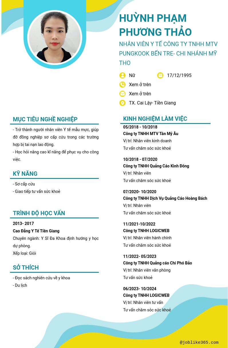 Xem hồ sơ ứng viên HUỲNH PHẠM PHƯƠNG THẢO cần 2 điểm. Hồ sơ được cập nhật ngày: 20/02/2025