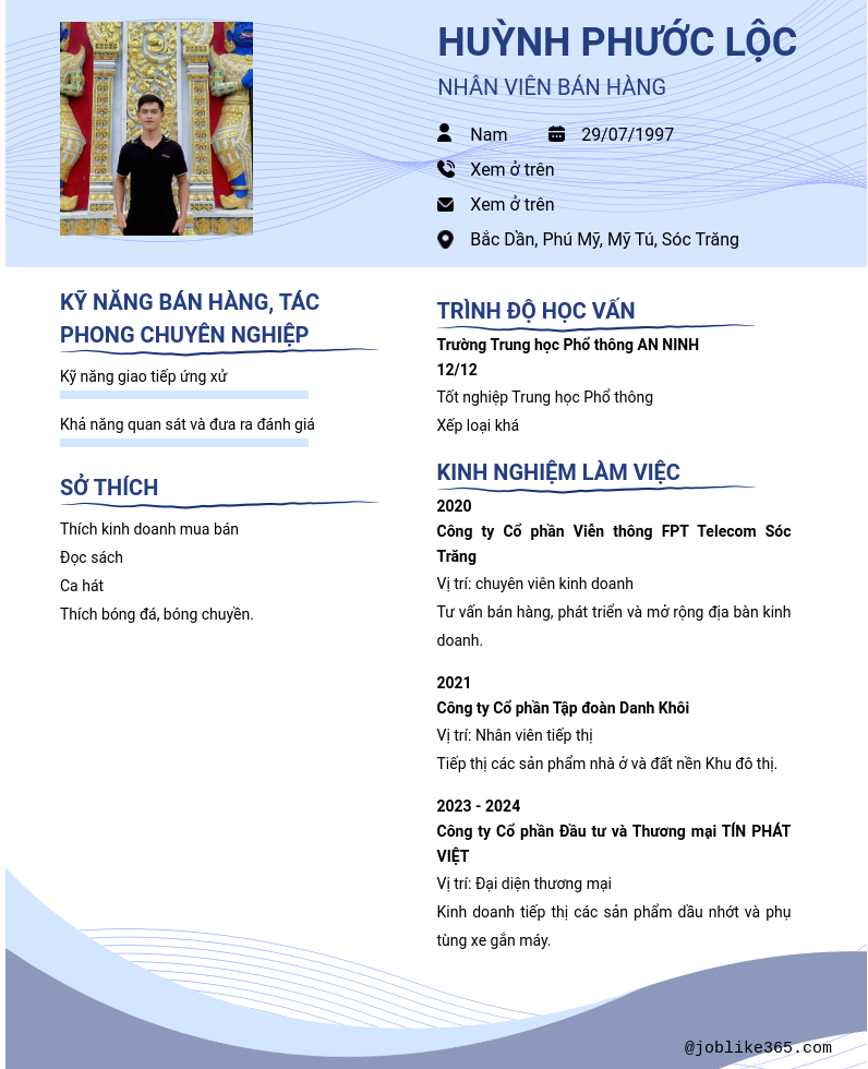 Xem hồ sơ ứng viên HUỲNH PHƯỚC LỘC cần 2 điểm. Hồ sơ được cập nhật ngày: 23/06/2025