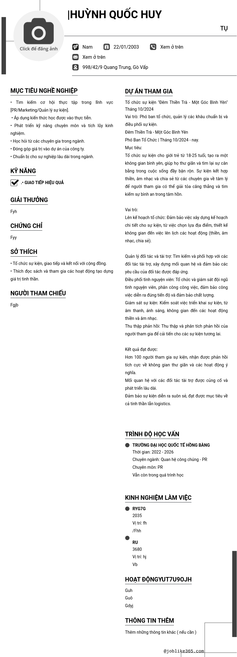 Xem hồ sơ ứng viên |Huỳnh Quốc Huy cần 2 điểm. Hồ sơ được cập nhật ngày: 29/09/2024