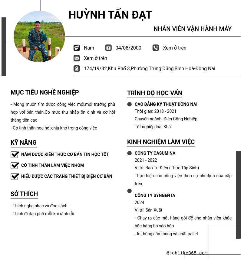 Xem hồ sơ ứng viên Huỳnh Tấn Đạt cần 2 điểm. Hồ sơ được cập nhật ngày: 24/08/2024