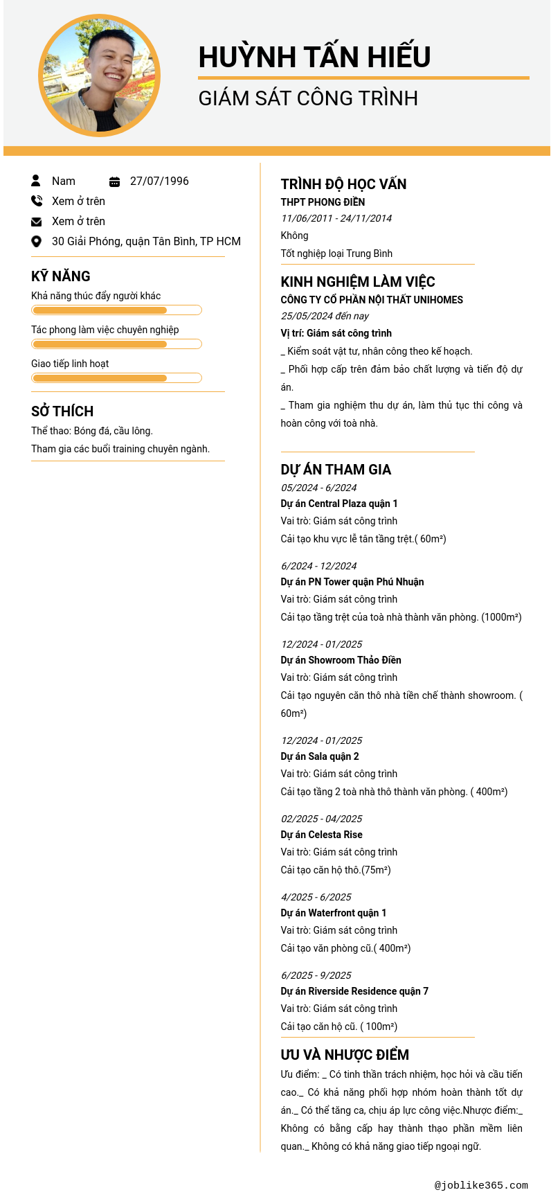 Xem hồ sơ ứng viên Huỳnh Tấn Hiếu cần 2 điểm. Hồ sơ được cập nhật ngày: 04/10/2025