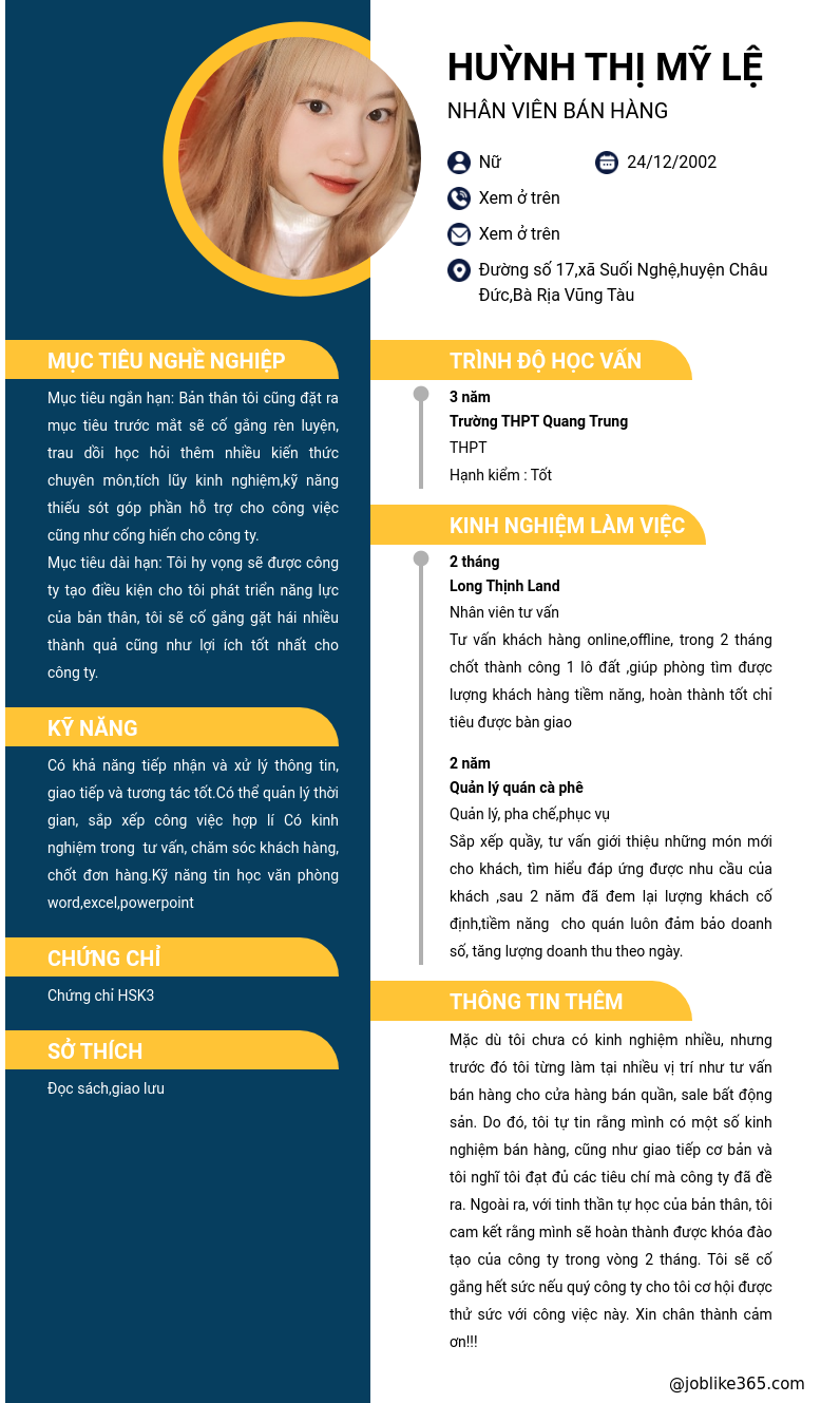Xem hồ sơ ứng viên HUỲNH THỊ MỸ LỆ cần 2 điểm. Hồ sơ được cập nhật ngày: 04/10/2024