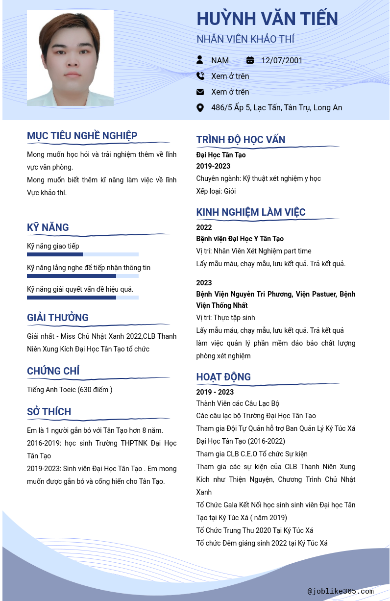 Xem hồ sơ ứng viên Huỳnh Văn Tiến cần 2 điểm. Hồ sơ được cập nhật ngày: 16/09/2024