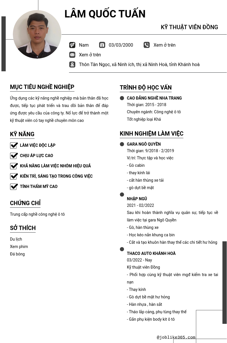 Xem hồ sơ ứng viên Lâm Quốc Tuấn cần 2 điểm. Hồ sơ được cập nhật ngày: 10/10/2024