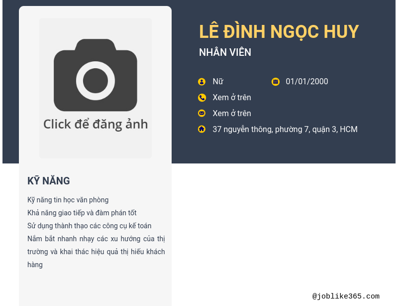 Xem hồ sơ ứng viên Lê Đình Ngọc Huy cần 2 điểm. Hồ sơ được cập nhật ngày: 20/06/2025