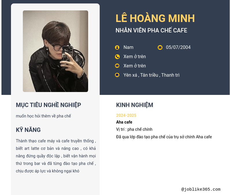 Xem hồ sơ ứng viên Lê Hoàng Minh cần 2 điểm. Hồ sơ được cập nhật ngày: 12/08/2025