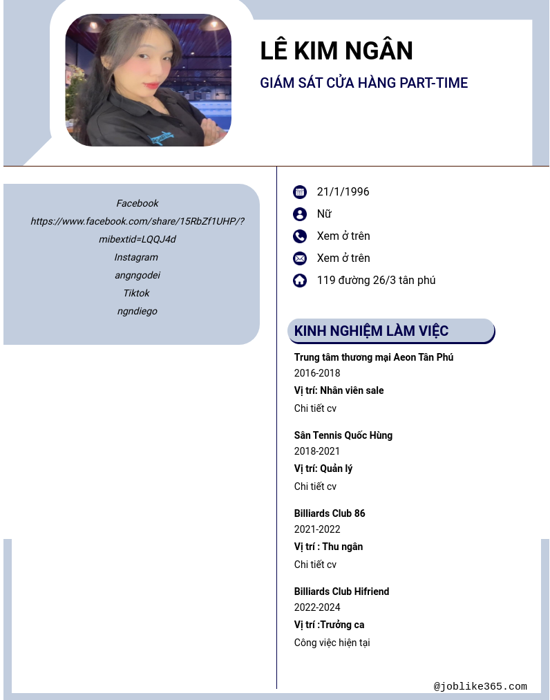 Xem hồ sơ ứng viên Lê Kim Ngân cần 2 điểm. Hồ sơ được cập nhật ngày: 14/12/2024
