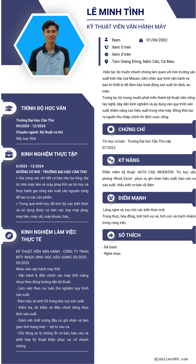 Xem hồ sơ ứng viên LÊ minh tình cần 2 điểm. Hồ sơ được cập nhật ngày: 26/05/2025