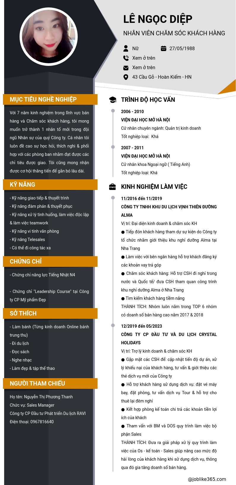 Xem hồ sơ ứng viên LÊ NGỌC DIỆP cần 2 điểm. Hồ sơ được cập nhật ngày: 17/06/2024
