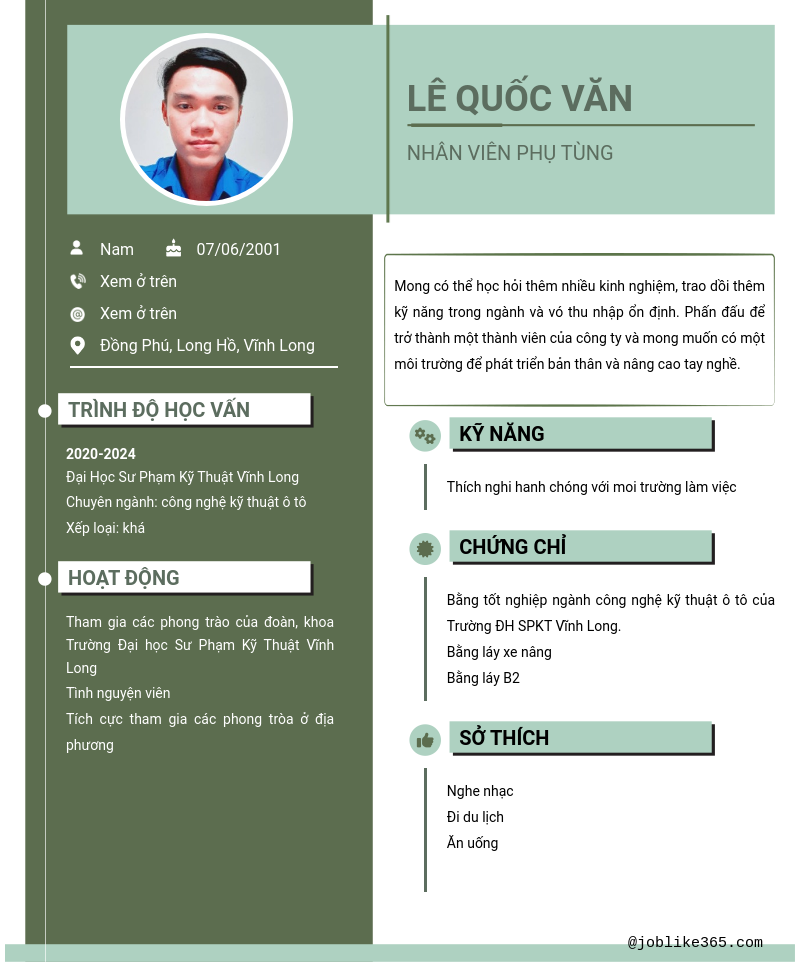 Xem hồ sơ ứng viên Lê Quốc Văn cần 2 điểm. Hồ sơ được cập nhật ngày: 04/11/2024