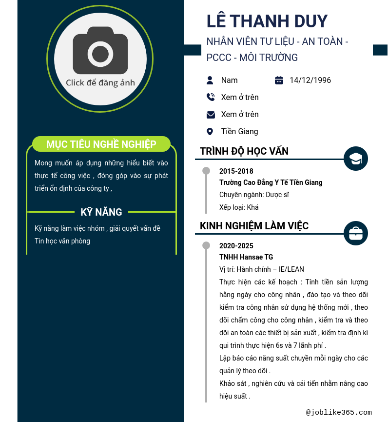 Xem hồ sơ ứng viên lê thanh duy cần 2 điểm. Hồ sơ được cập nhật ngày: 15/07/2025