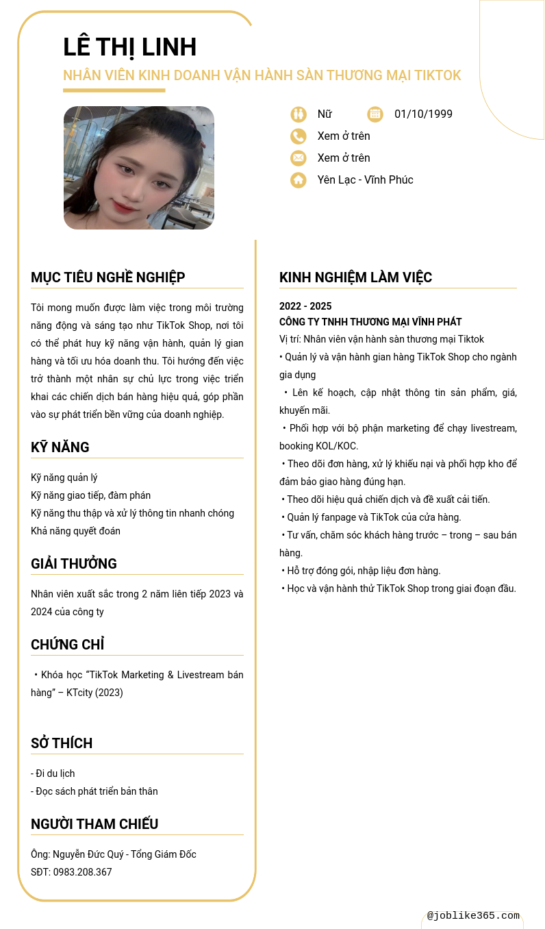 Xem hồ sơ ứng viên LÊ THỊ LINH cần 2 điểm. Hồ sơ được cập nhật ngày: 09/06/2025