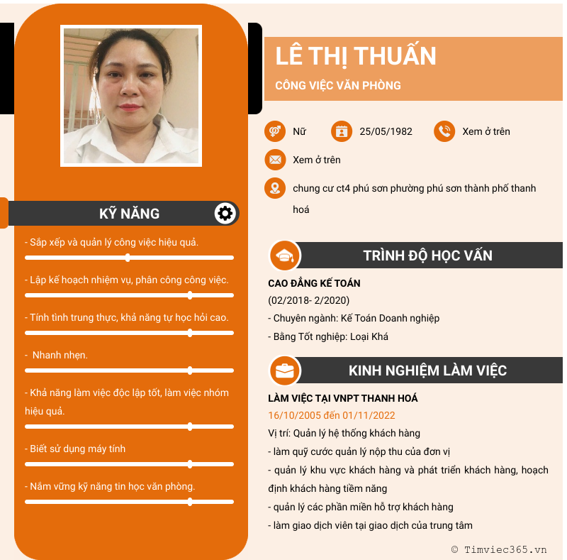 Xem hồ sơ ứng viên Lê Thị Thuấn cần 2 điểm. Hồ sơ được cập nhật ngày: 31/08/2024