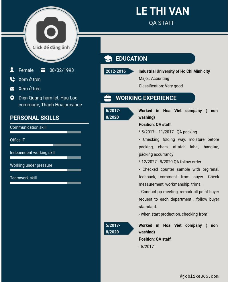 Xem hồ sơ ứng viên le thi van cần 2 điểm. Hồ sơ được cập nhật ngày: 07/03/2026