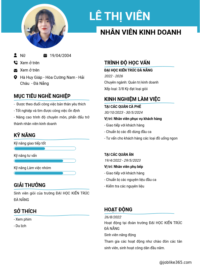 Xem hồ sơ ứng viên LÊ THỊ VIÊN cần 2 điểm. Hồ sơ được cập nhật ngày: 19/05/2025