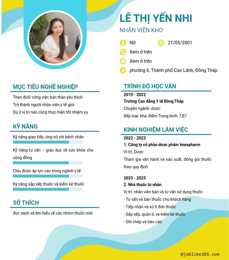 Xem hồ sơ ứng viên lê thị YẾN nhI cần 2 điểm. Hồ sơ được cập nhật ngày: 20/06/2025