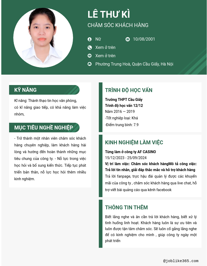Mẫu CV xin việc