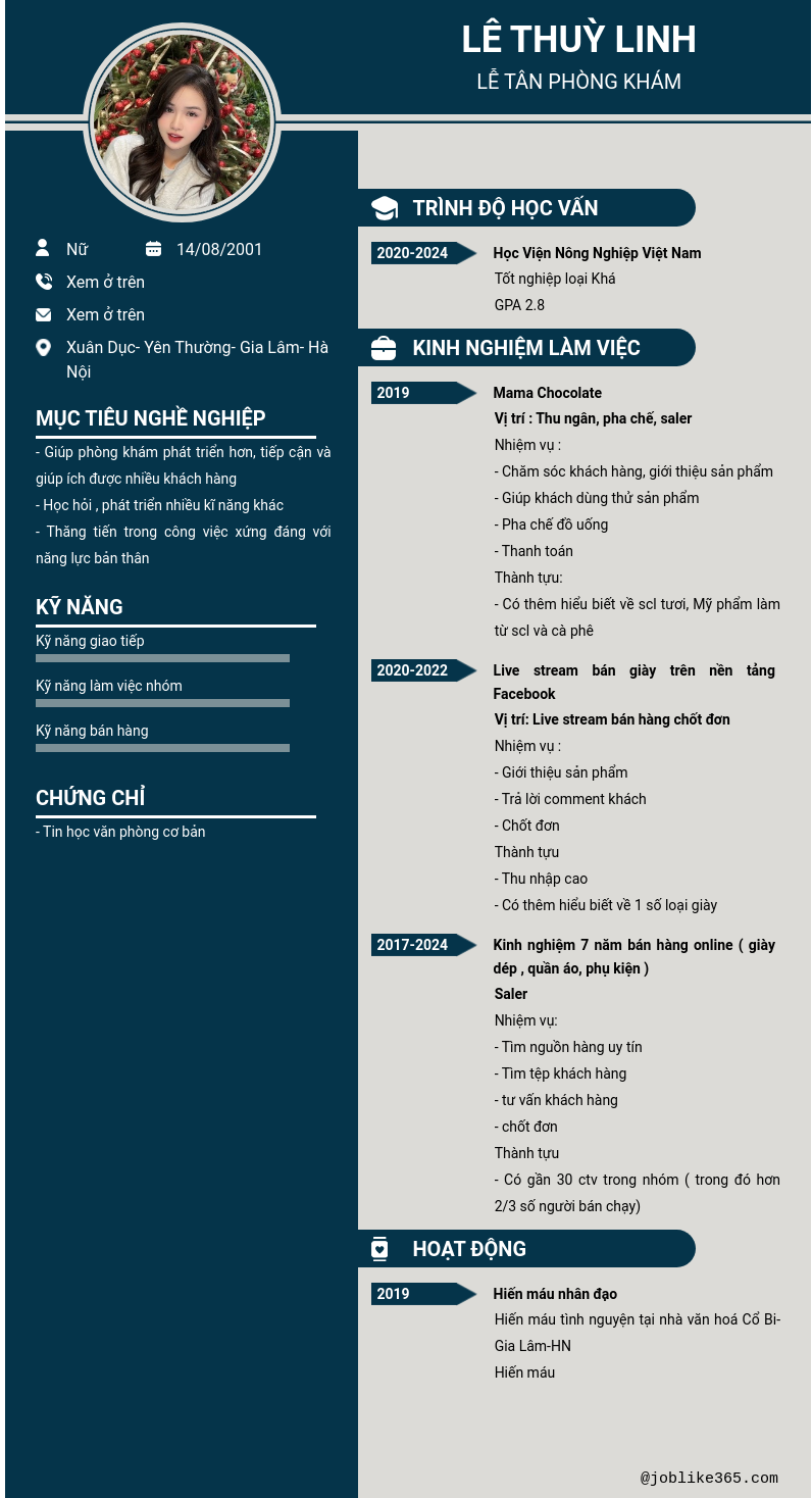 Xem hồ sơ ứng viên Lê Thuỳ Linh cần 2 điểm. Hồ sơ được cập nhật ngày: 14/01/2025