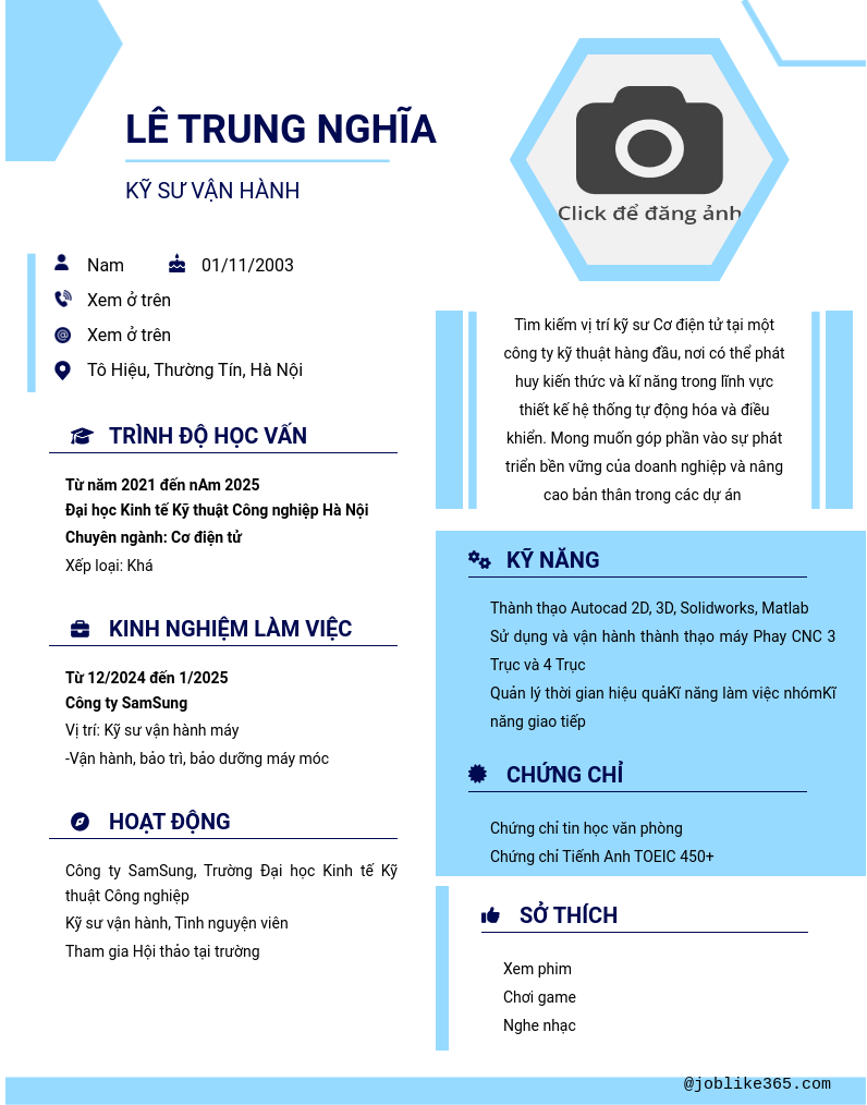 Xem hồ sơ ứng viên Lê trung nghĩa cần 2 điểm. Hồ sơ được cập nhật ngày: 04/10/2024