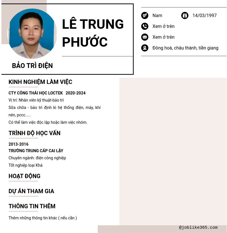 Xem hồ sơ ứng viên Lê Trung Phước cần 2 điểm. Hồ sơ được cập nhật ngày: 23/09/2024