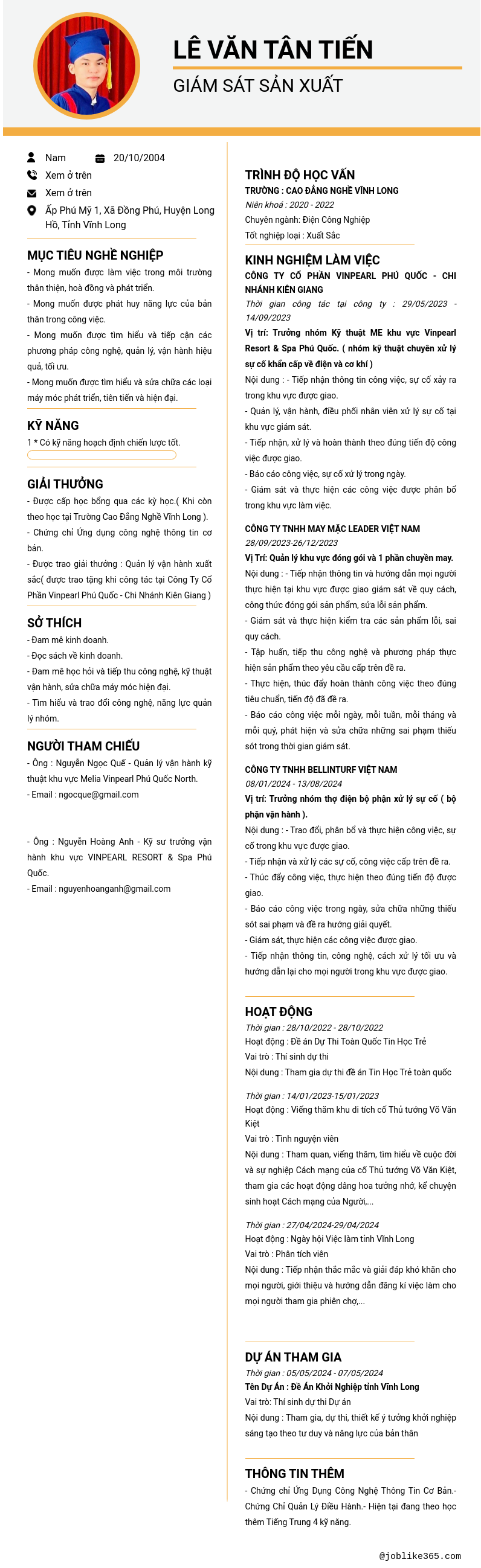Xem hồ sơ ứng viên LÊ VĂN TÂN TIẾN cần 2 điểm. Hồ sơ được cập nhật ngày: 14/08/2024