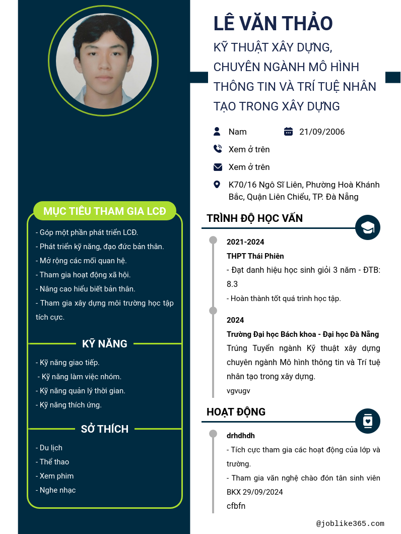 Xem hồ sơ ứng viên lê văn thảo cần 2 điểm. Hồ sơ được cập nhật ngày: 28/10/2024