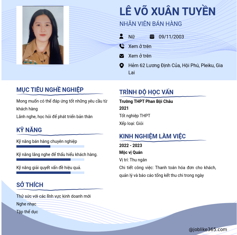 Xem hồ sơ ứng viên LÊ VÕ XUÂN TUYỀN cần 2 điểm. Hồ sơ được cập nhật ngày: 12/06/2024