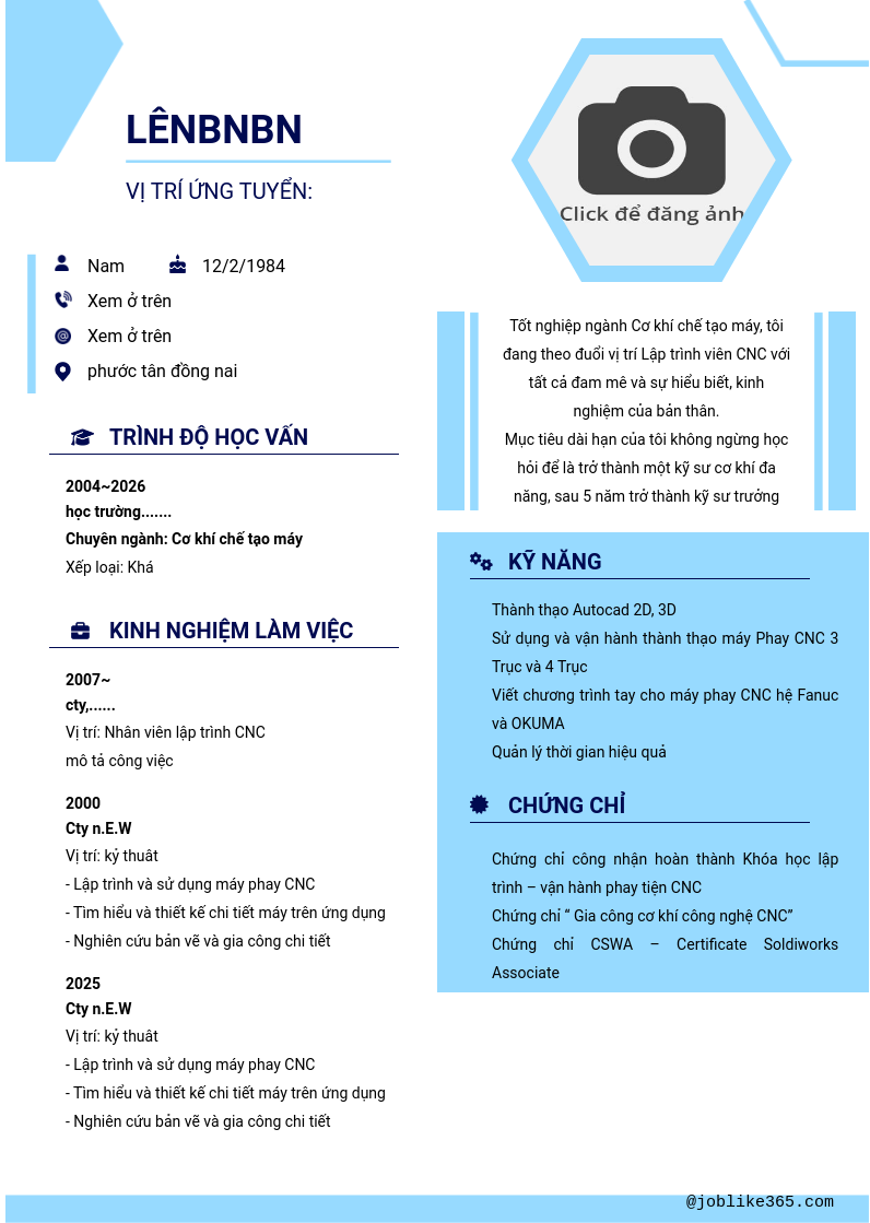 Xem hồ sơ ứng viên lênbnbn cần 2 điểm. Hồ sơ được cập nhật ngày: 30/10/2025