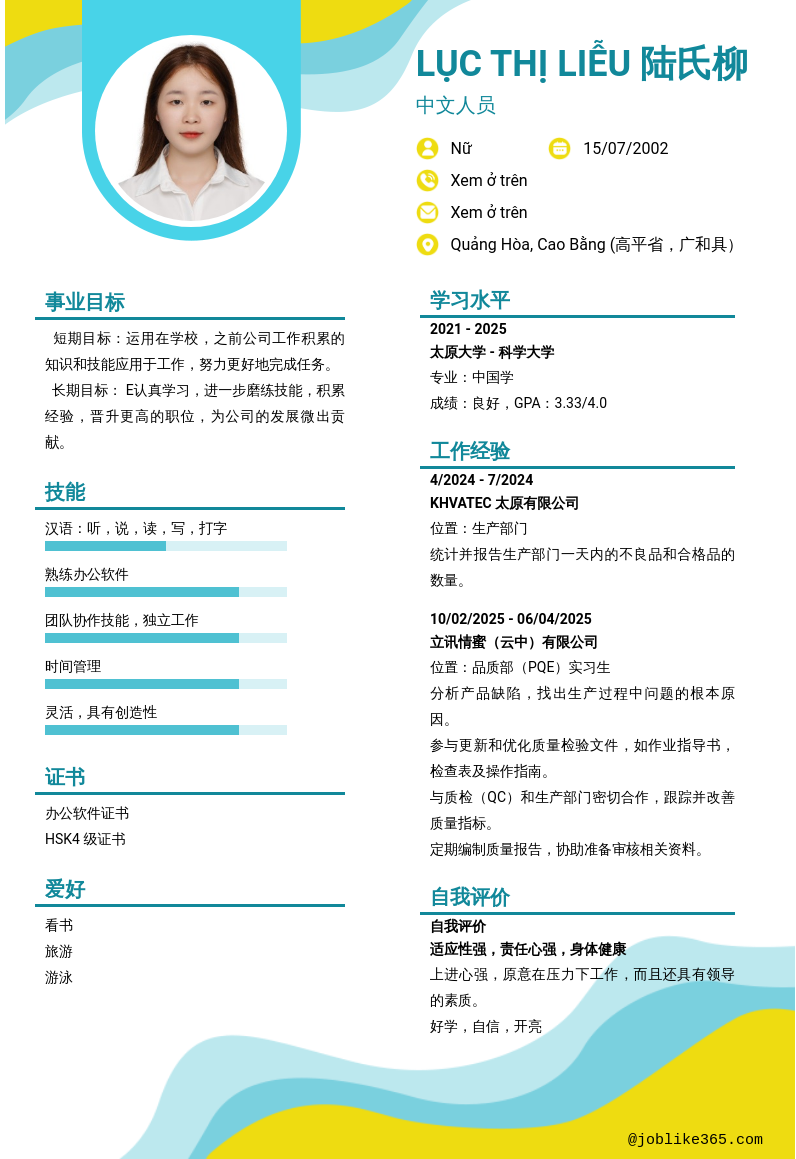 Xem hồ sơ ứng viên long thị thương cần 2 điểm. Hồ sơ được cập nhật ngày: 23/11/2025