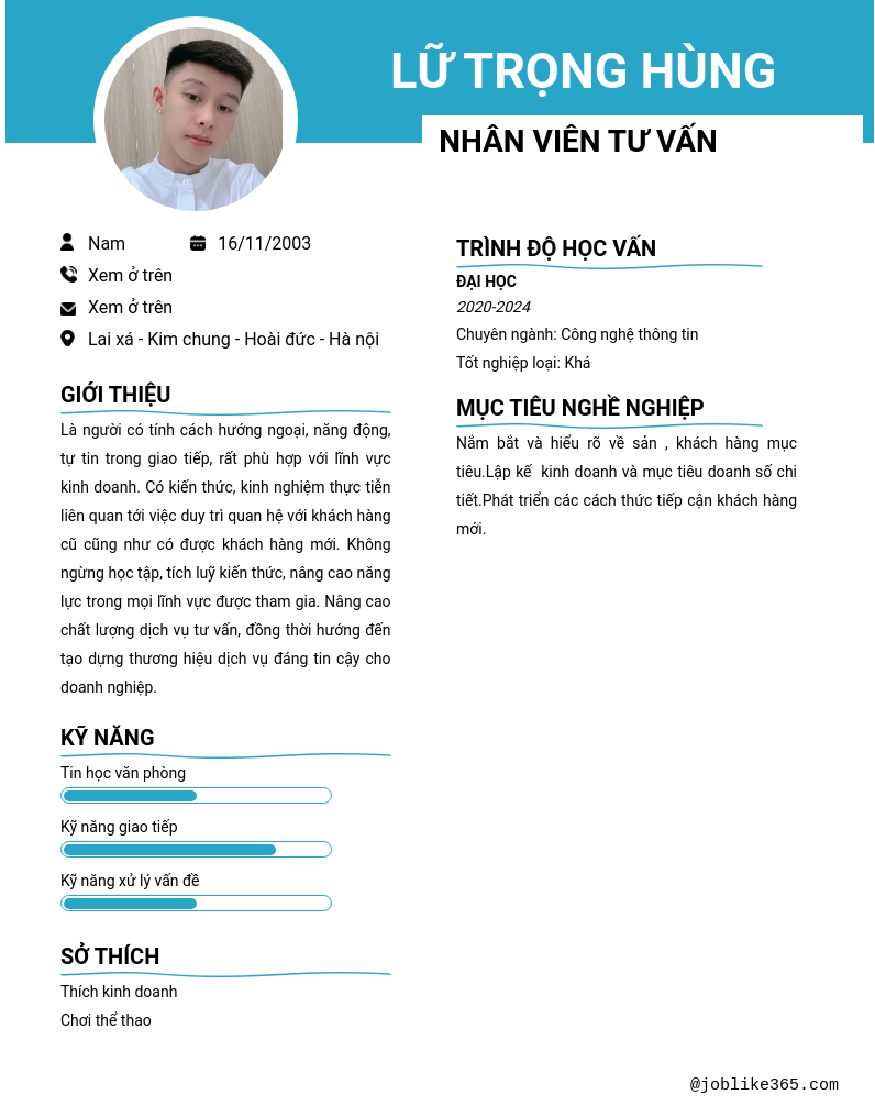 Xem hồ sơ ứng viên Lữ Trọng hùng cần 2 điểm. Hồ sơ được cập nhật ngày: 09/09/2024