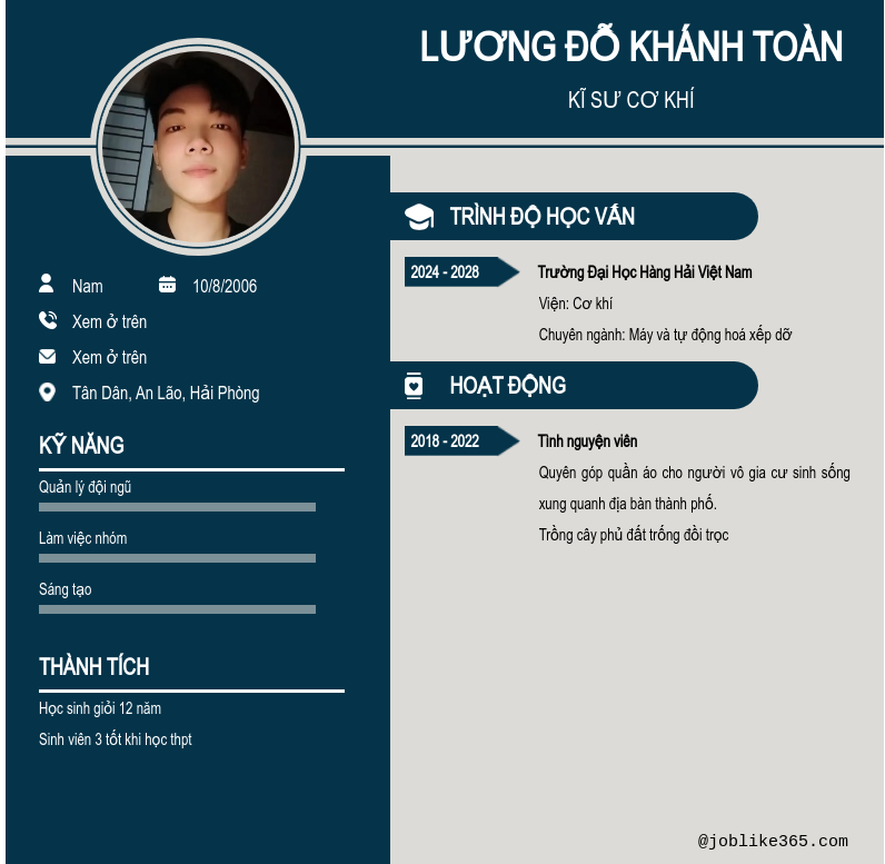Xem hồ sơ ứng viên LƯƠNG ĐỖ KHÁNH TOÀN cần 2 điểm. Hồ sơ được cập nhật ngày: 01/10/2024
