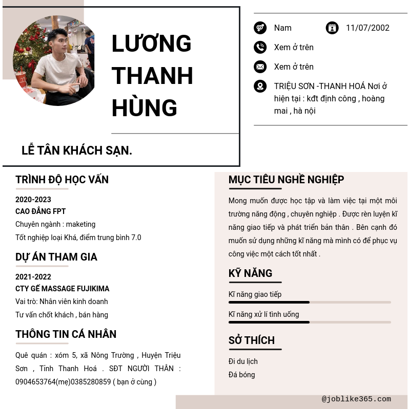 Xem hồ sơ ứng viên LƯƠNG THANH HÙNG cần 2 điểm. Hồ sơ được cập nhật ngày: 11/08/2024