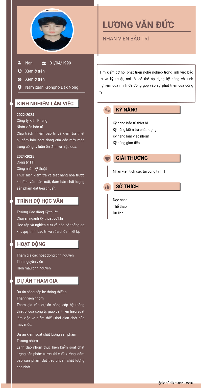 Xem hồ sơ ứng viên LƯƠNG VĂN ĐỨC cần 2 điểm. Hồ sơ được cập nhật ngày: 22/05/2025