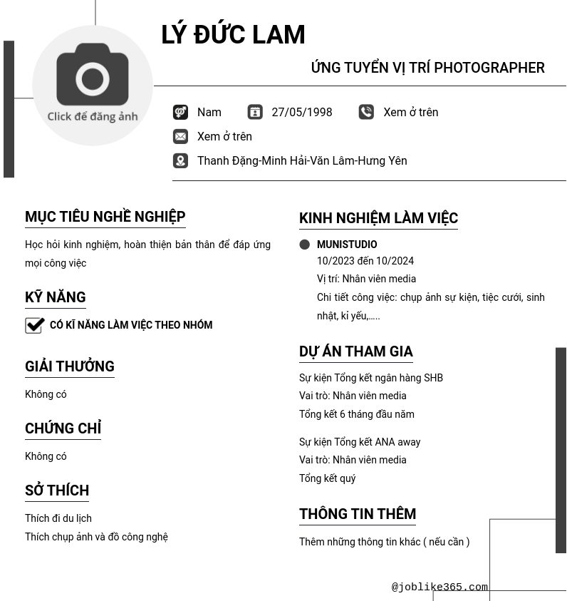 Xem hồ sơ ứng viên Lý Đức Lam cần 2 điểm. Hồ sơ được cập nhật ngày: 21/11/2024