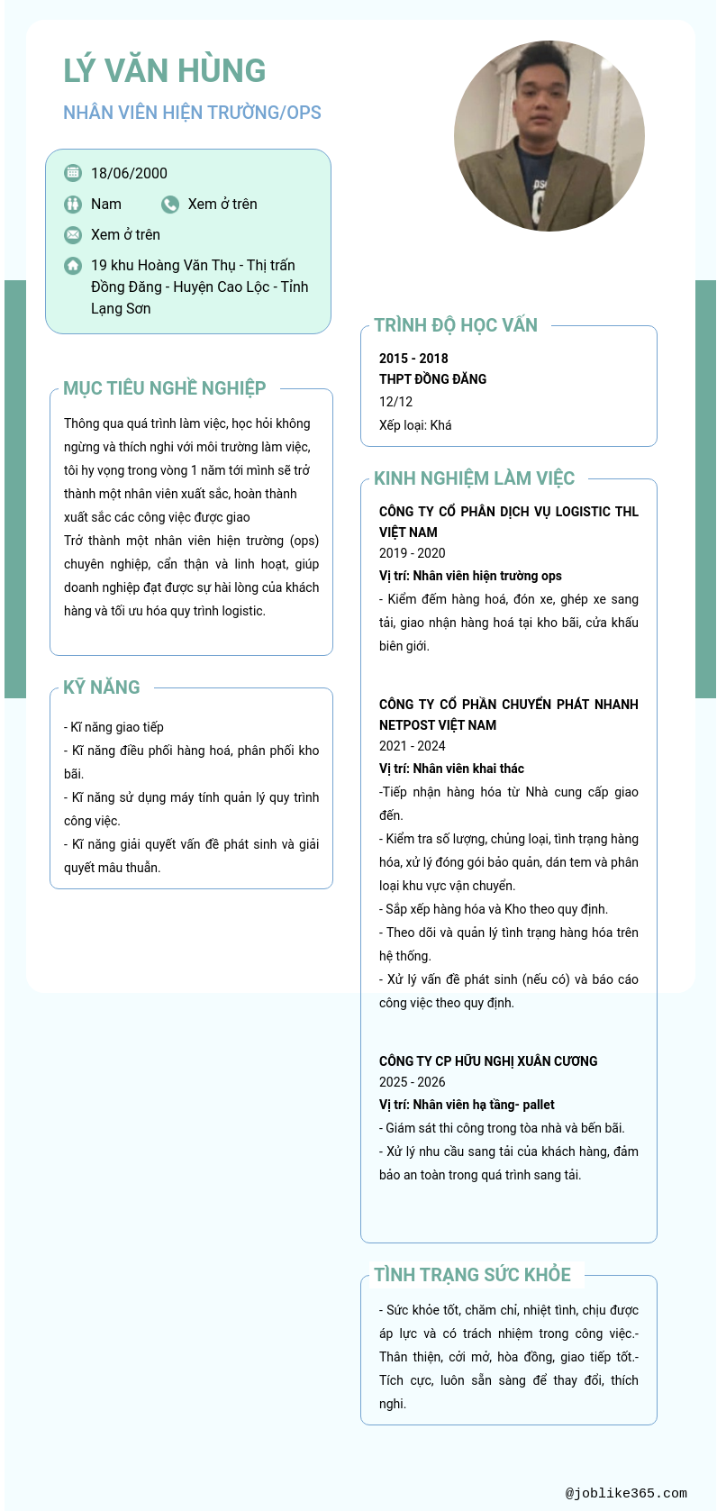 Chi tiết trong CV