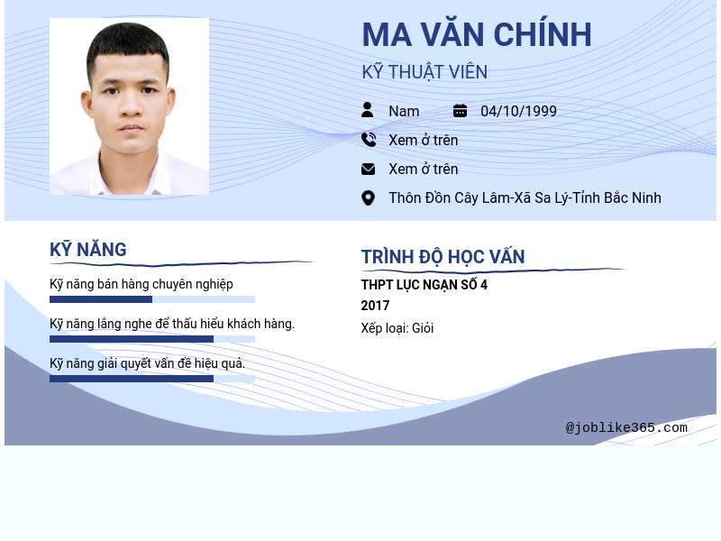 Xem hồ sơ ứng viên MA VĂN CHÍNH cần 2 điểm. Hồ sơ được cập nhật ngày: 27/08/2025