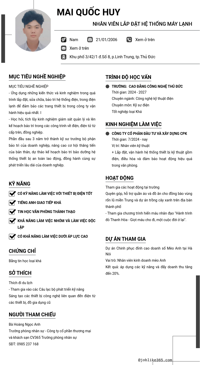 Xem hồ sơ ứng viên mai quốc huy cần 2 điểm. Hồ sơ được cập nhật ngày: 21/12/2024