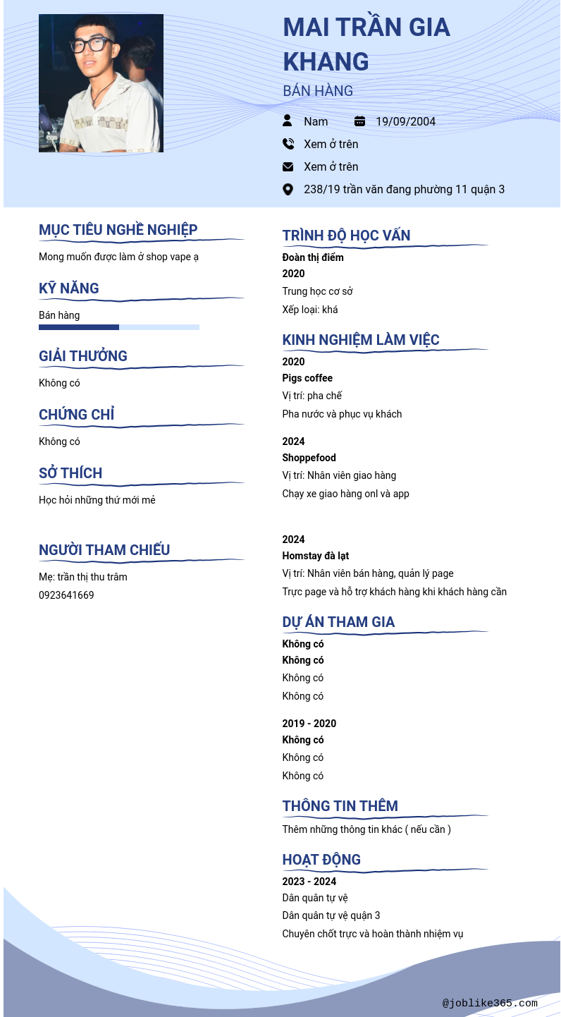Xem hồ sơ ứng viên Mai trần gia khang cần 2 điểm. Hồ sơ được cập nhật ngày: 05/12/2024