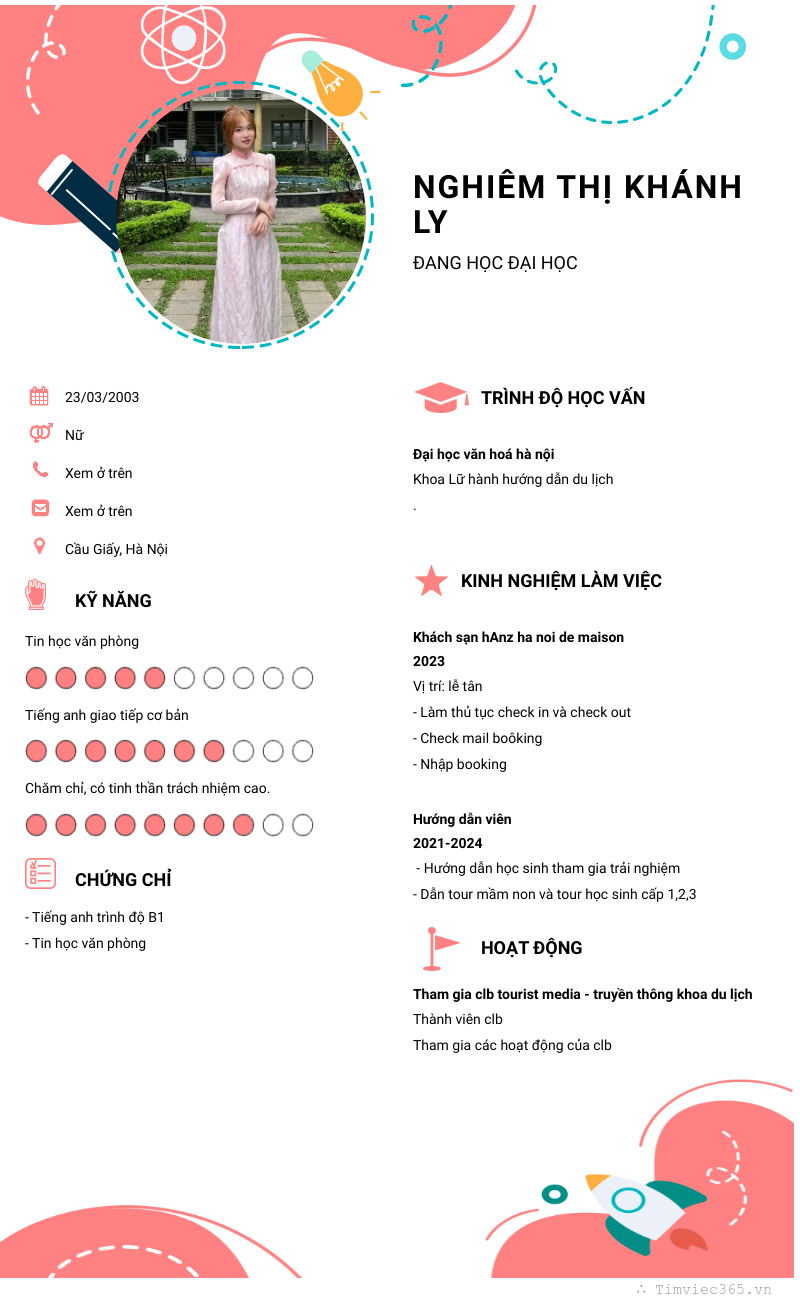 Xem hồ sơ ứng viên Nghiêm Thị Khánh Ly cần 2 điểm. Hồ sơ được cập nhật ngày: 18/10/2024