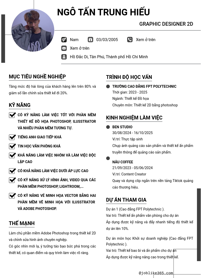 Xem hồ sơ ứng viên Ngô tấn trung hiếu cần 2 điểm. Hồ sơ được cập nhật ngày: 26/11/2025