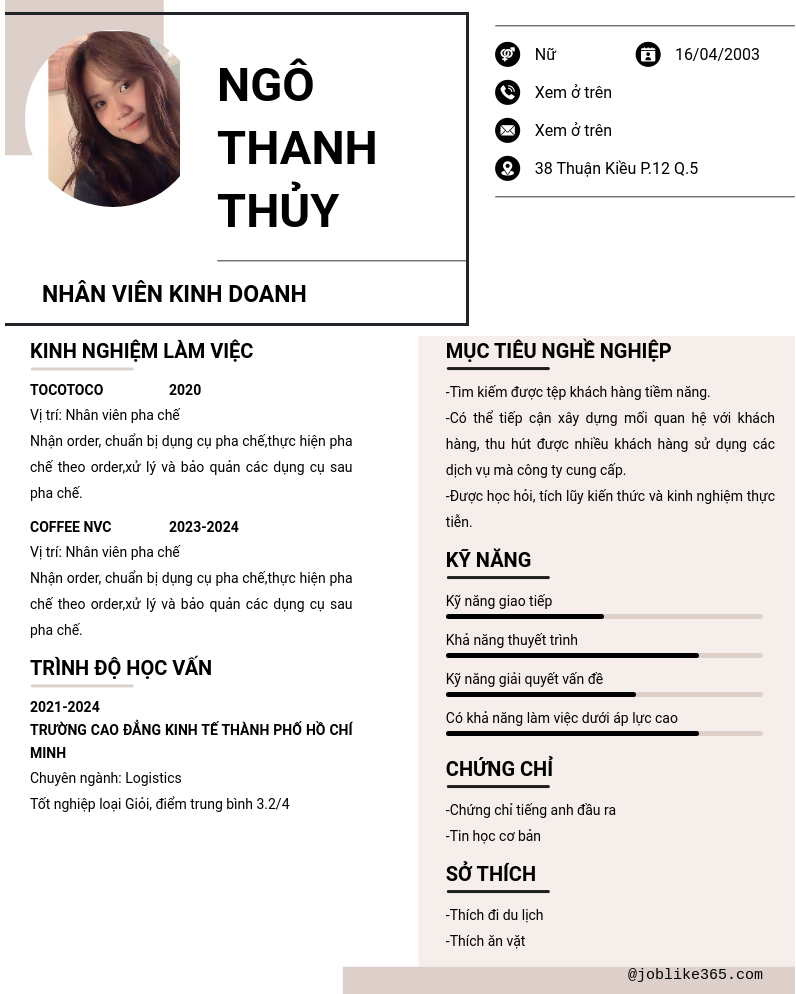 Xem hồ sơ ứng viên NGÔ THANH THỦY cần 2 điểm. Hồ sơ được cập nhật ngày: 09/10/2024